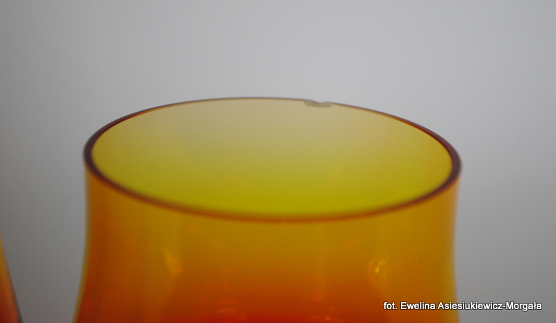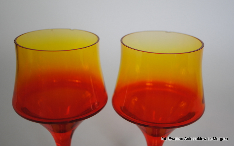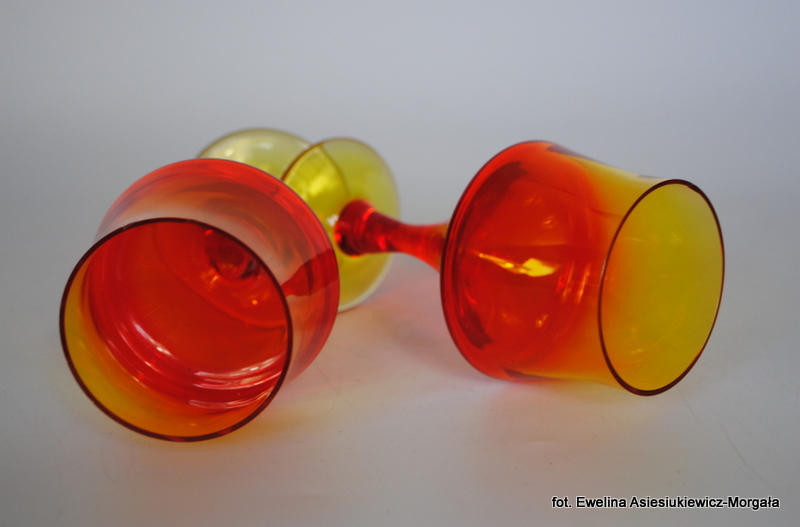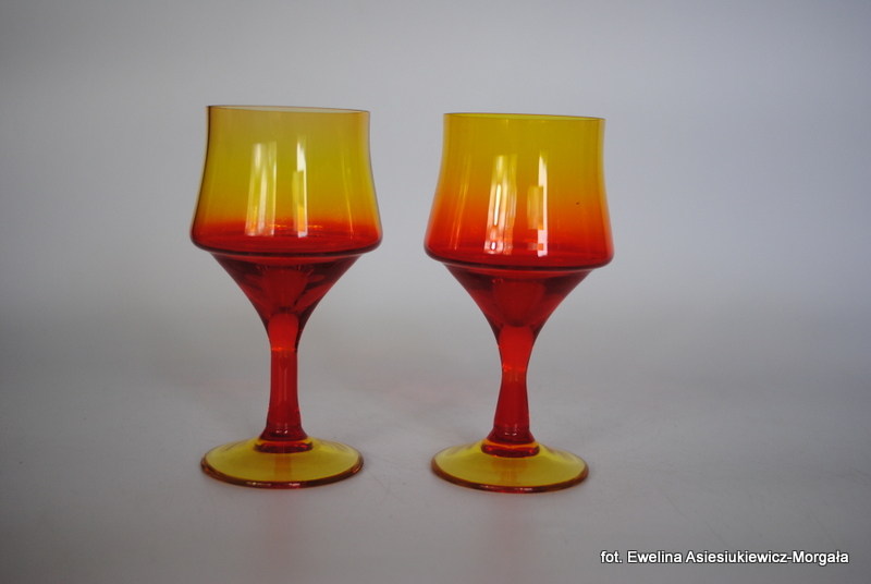 Para kieliszków, proj Zbigniew Horbowy, HS Barbara. Szkło sodowe, barwione w masie.