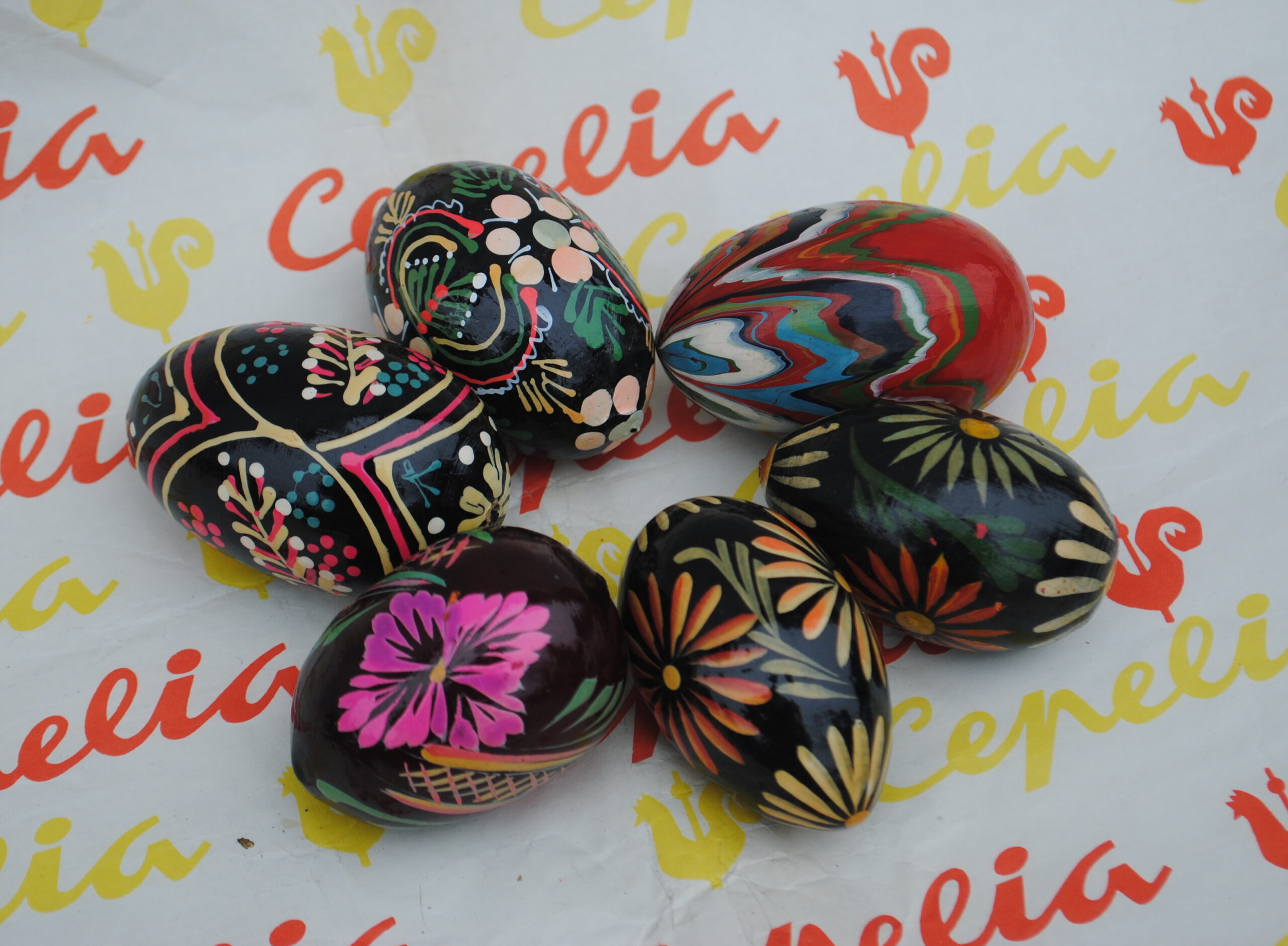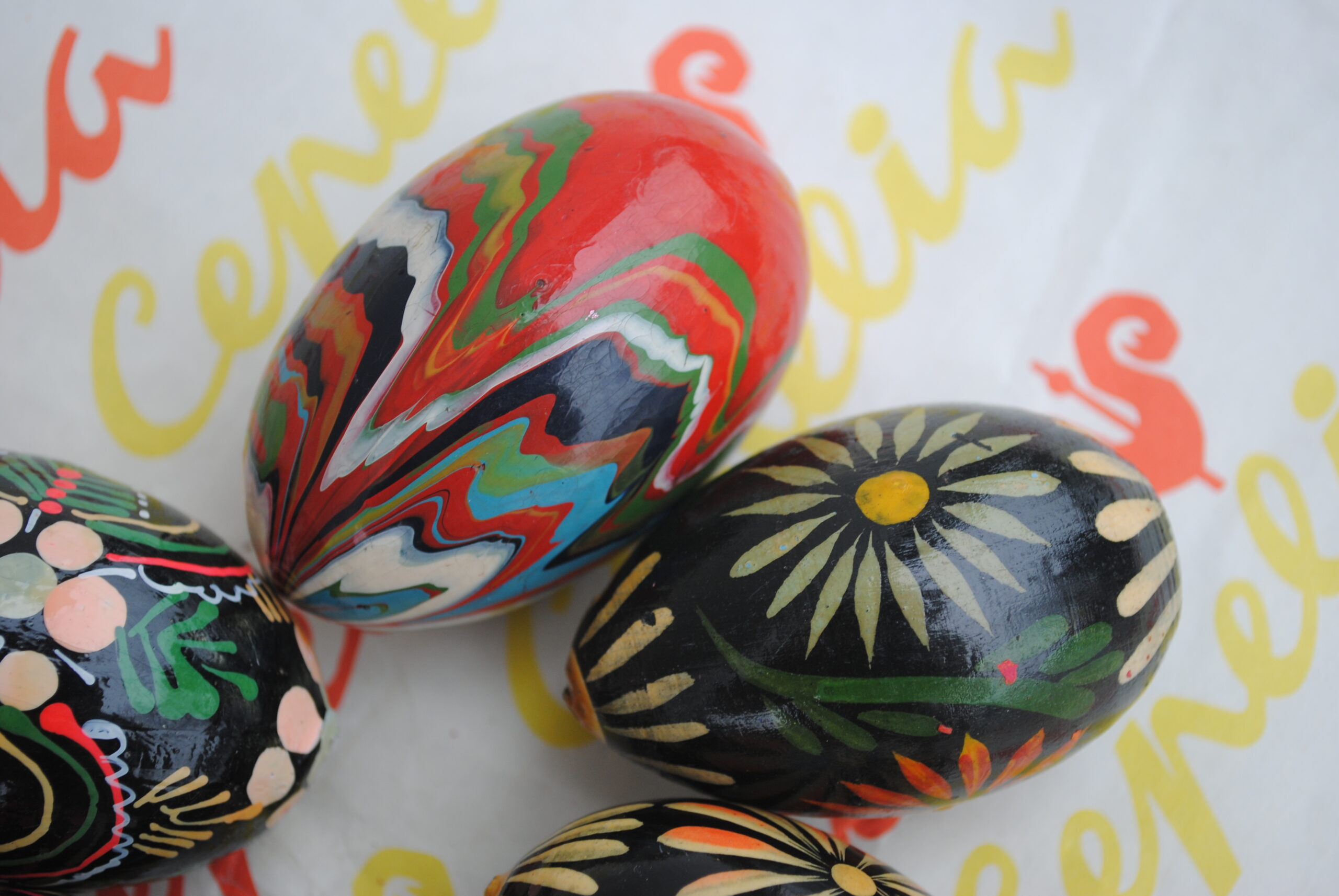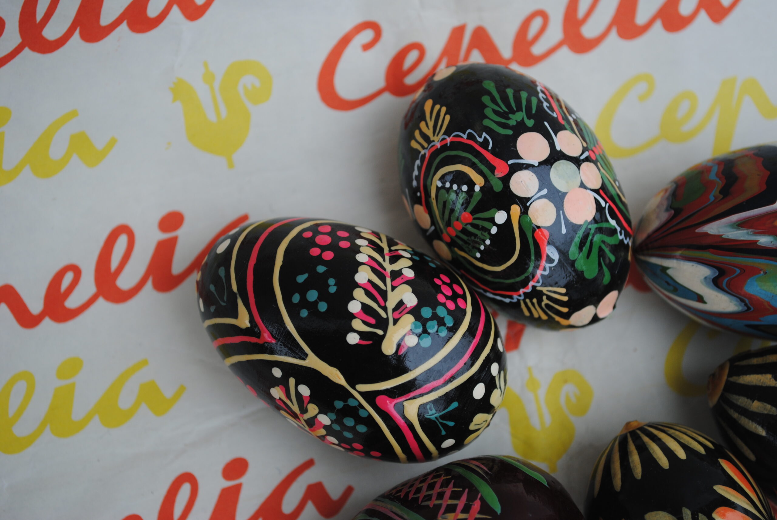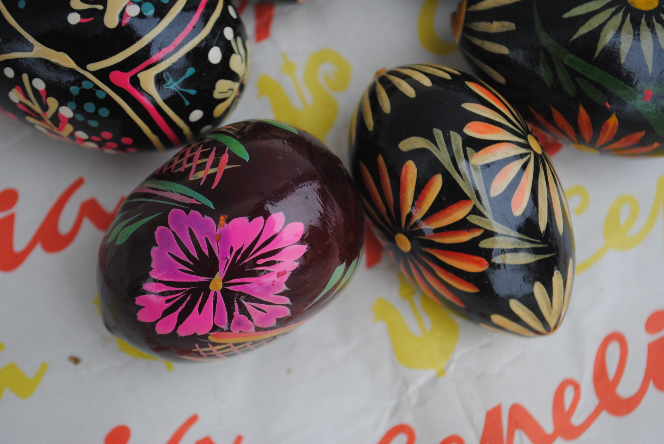 Drewniane jajka PRL. 6 sztuk. Ręcznie malowane.