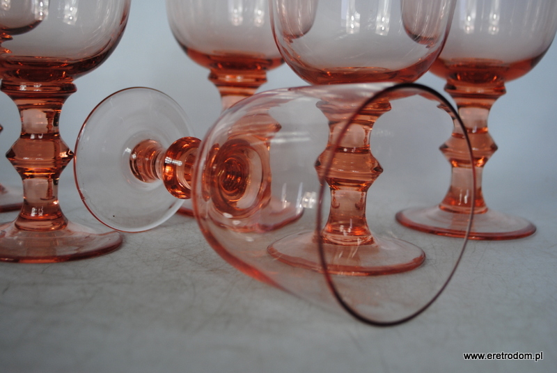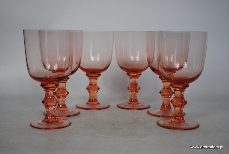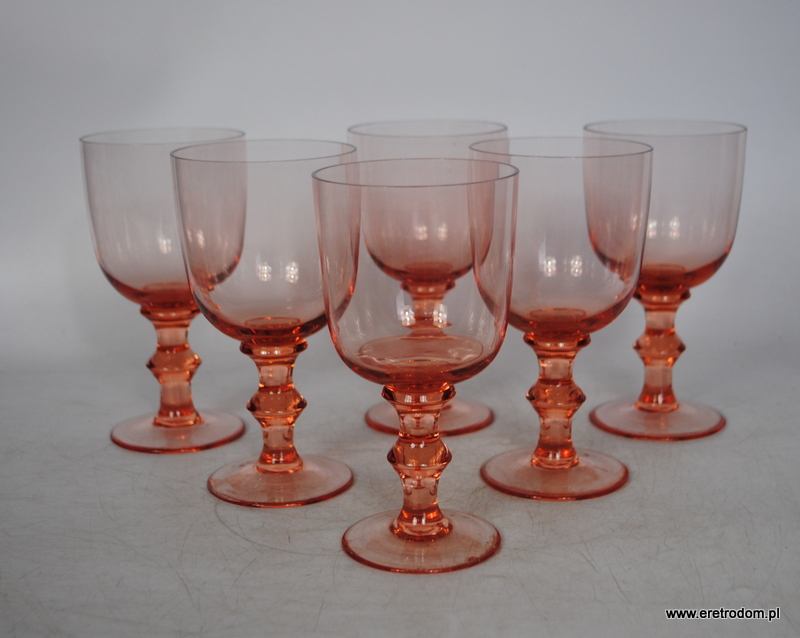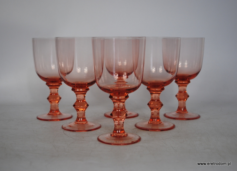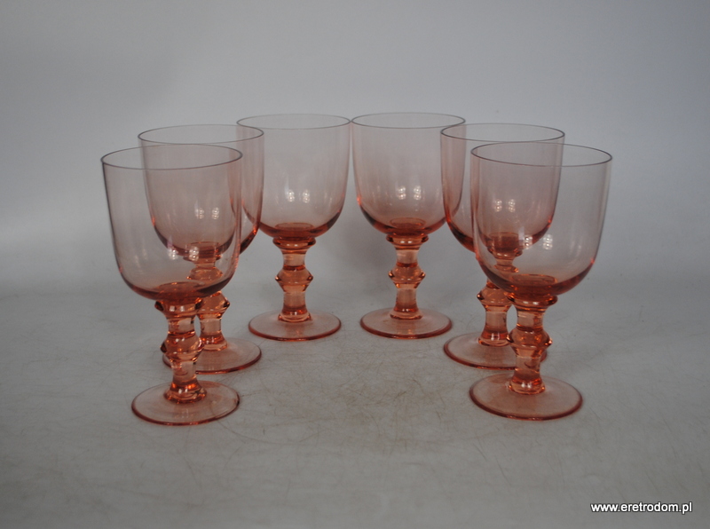 Zestaw 6 kieliszków rozalinowych, Projekt Wszewłod Sarnecki „Aurora” polska produkcja z II poł. XXw. Szkło sodowe, ręcznie formowane, barwione w masie,