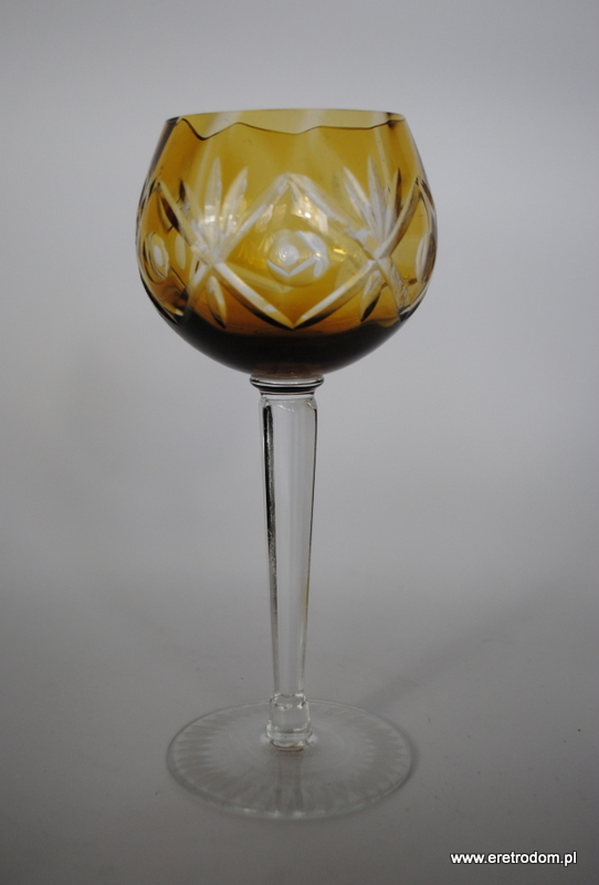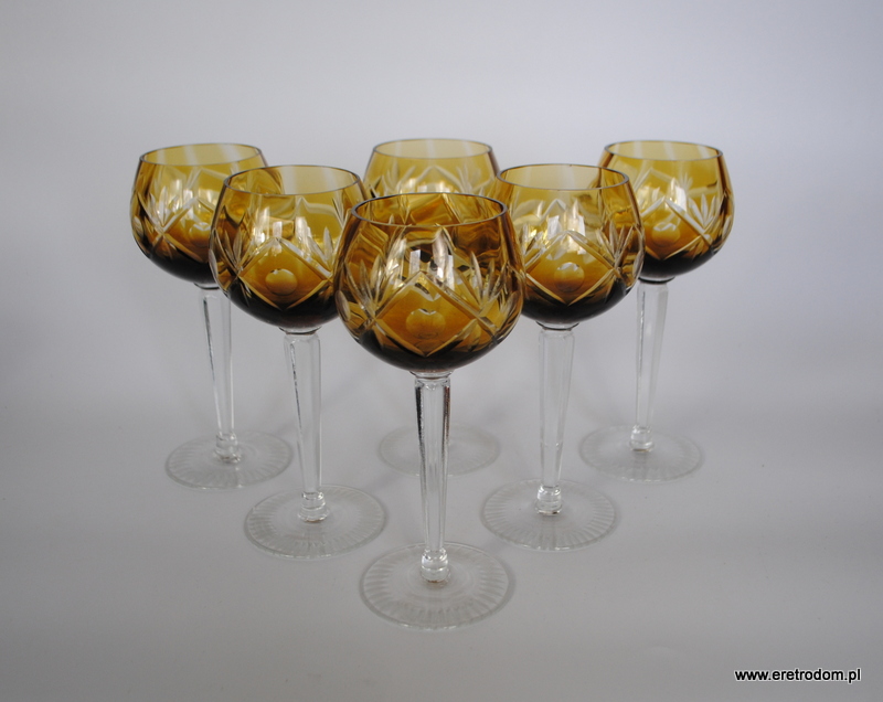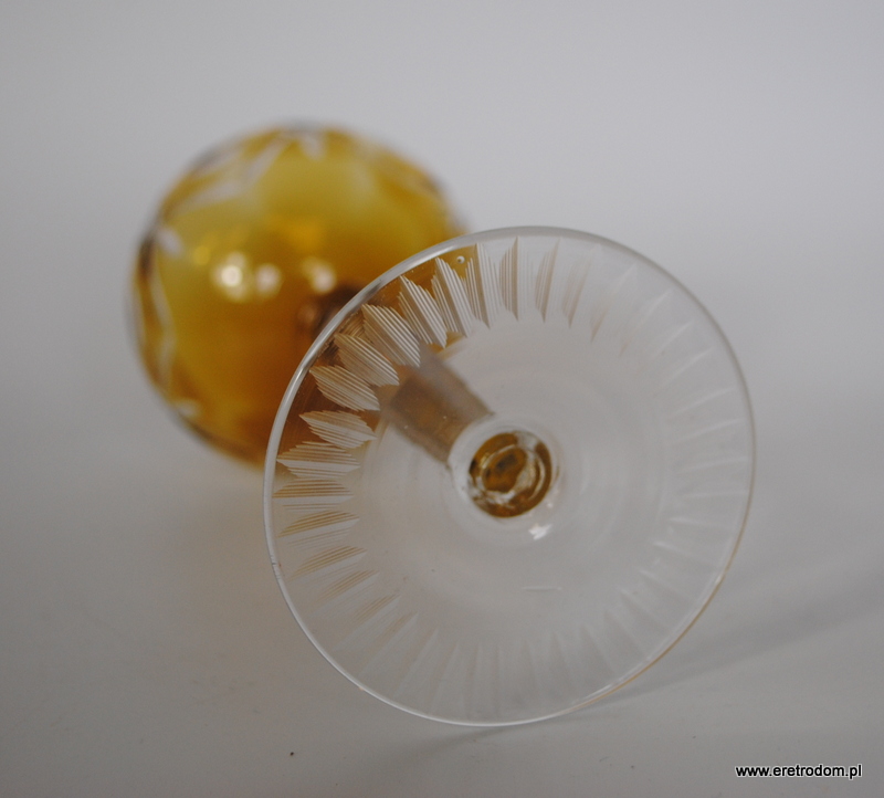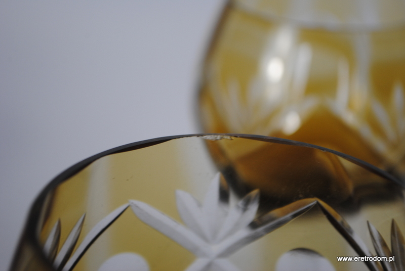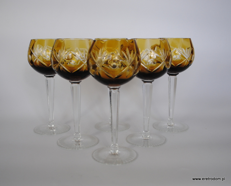 Zestaw 6 kieliszków kryształowych. Czasza w kolorze miodowym osadzona na bezbarwnej nodze.
