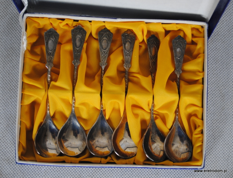 Zestaw 6 łyżeczek platerowanych srebrem. Wyprodukowane w jednej w polskich wytwórni w II poł. XXW.