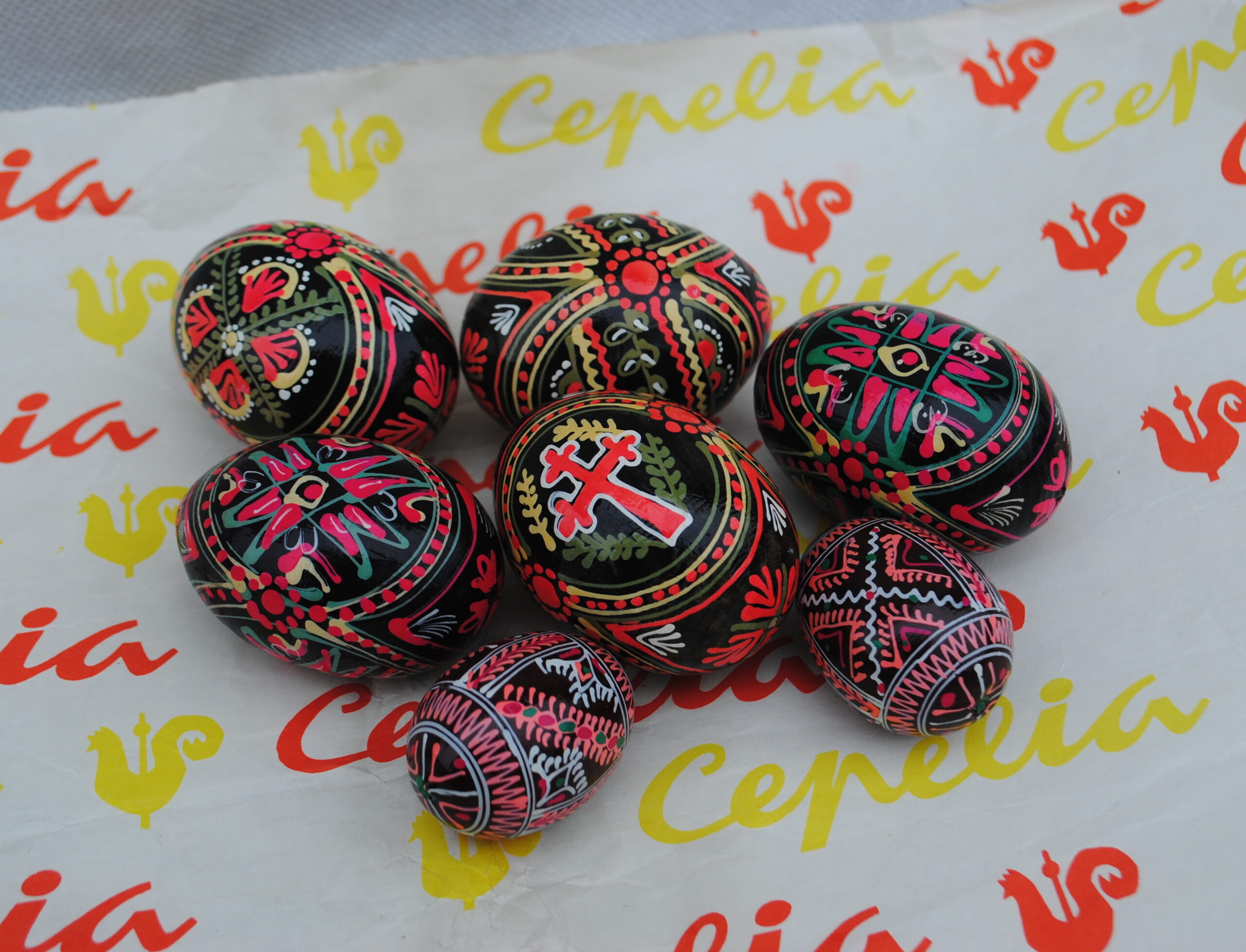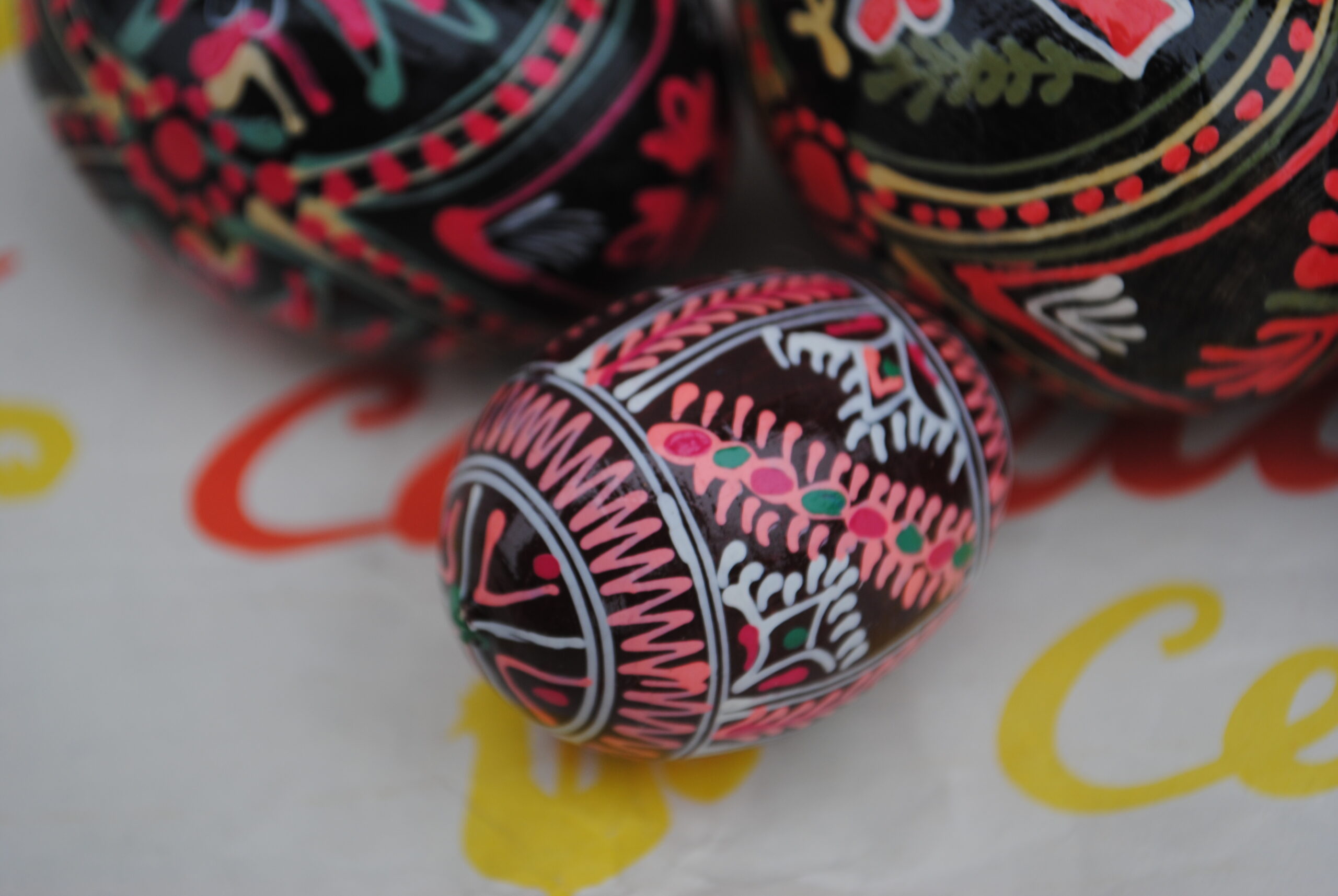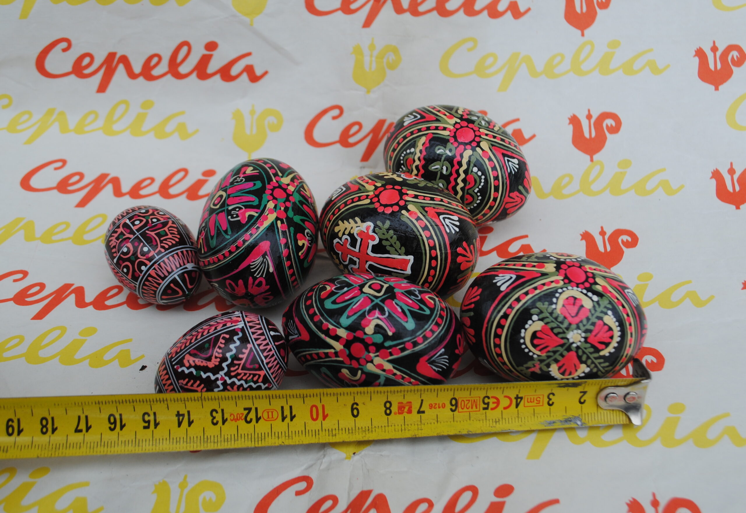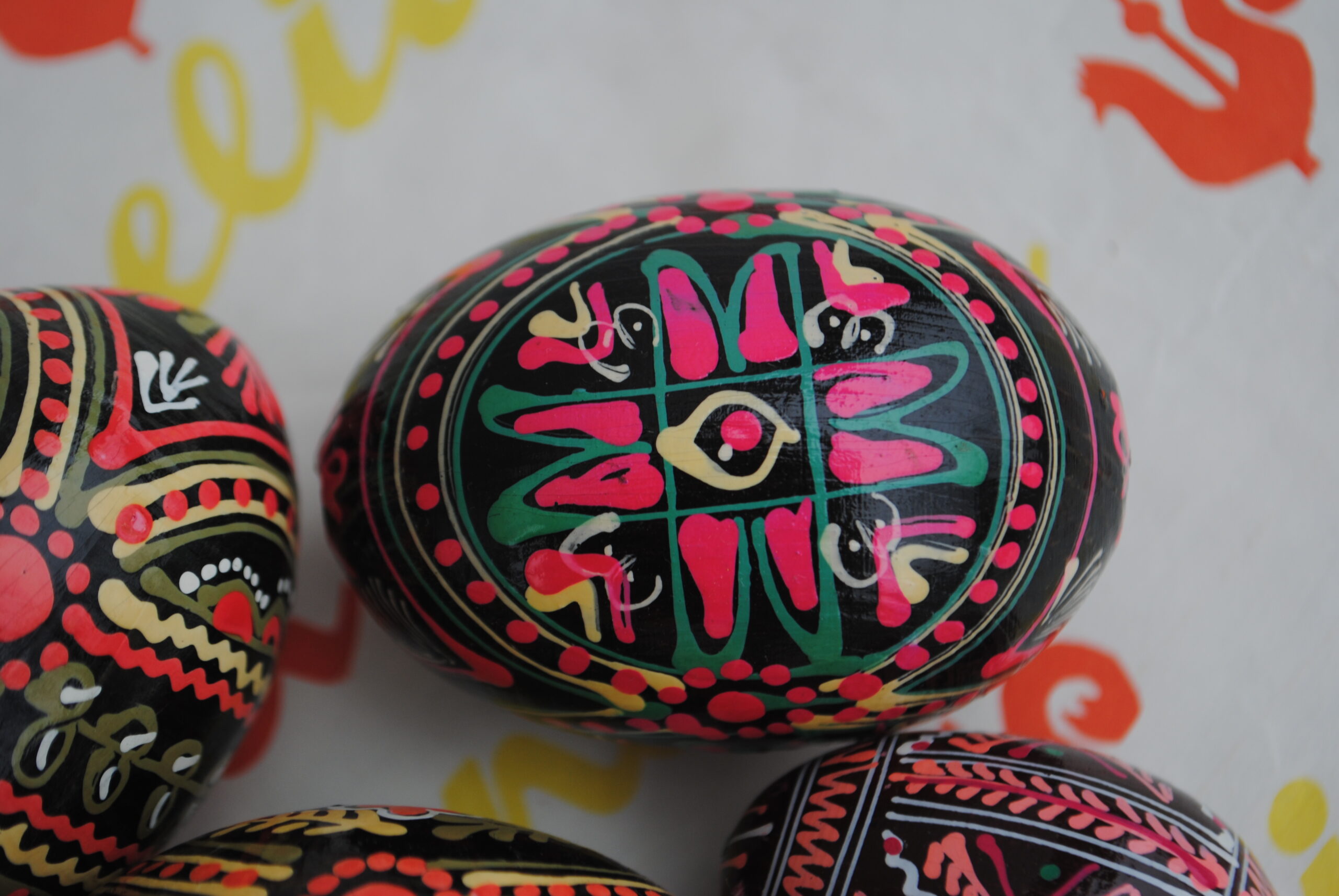 Drewniane jajka PRL. 7 sztuk. Ręcznie malowane.