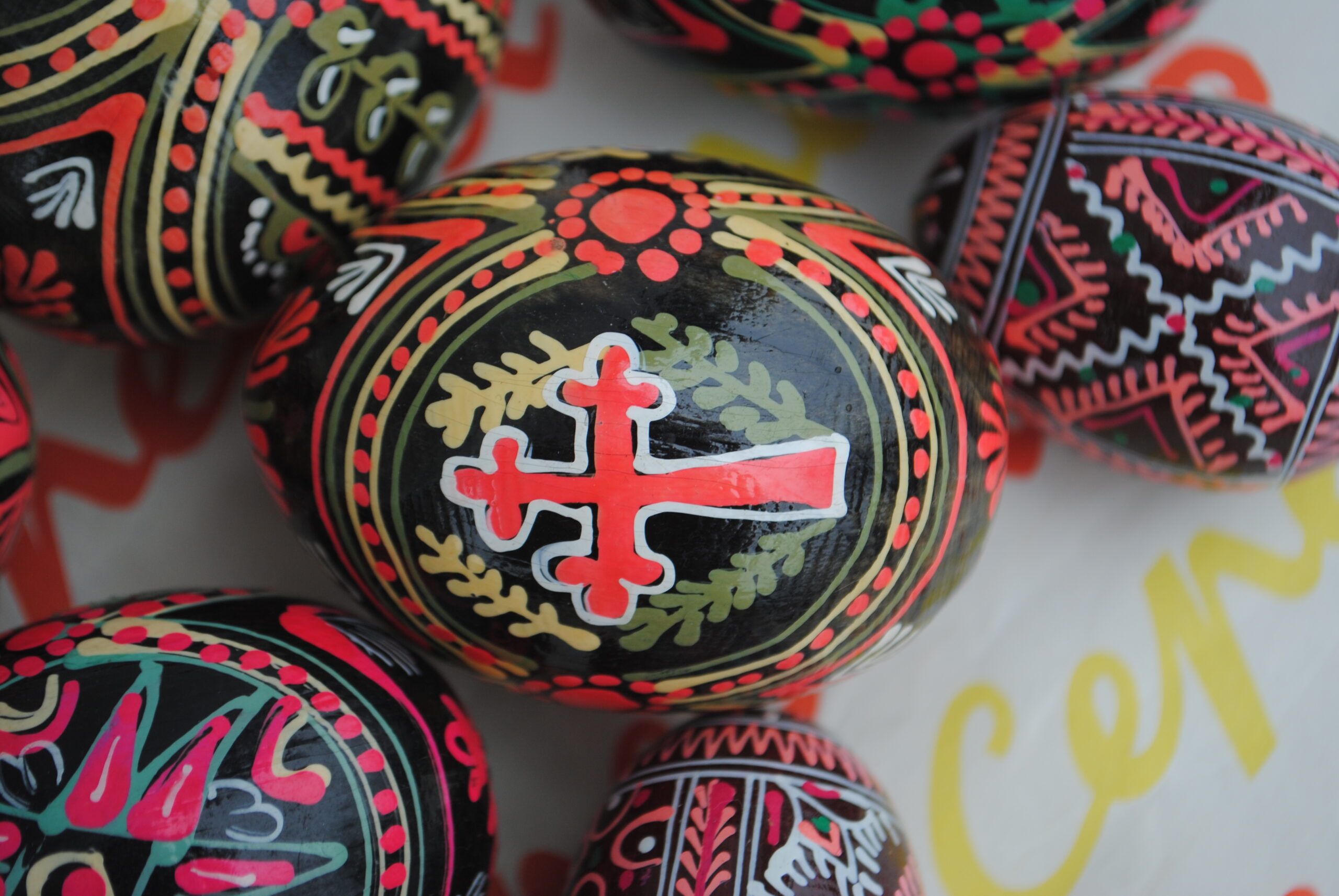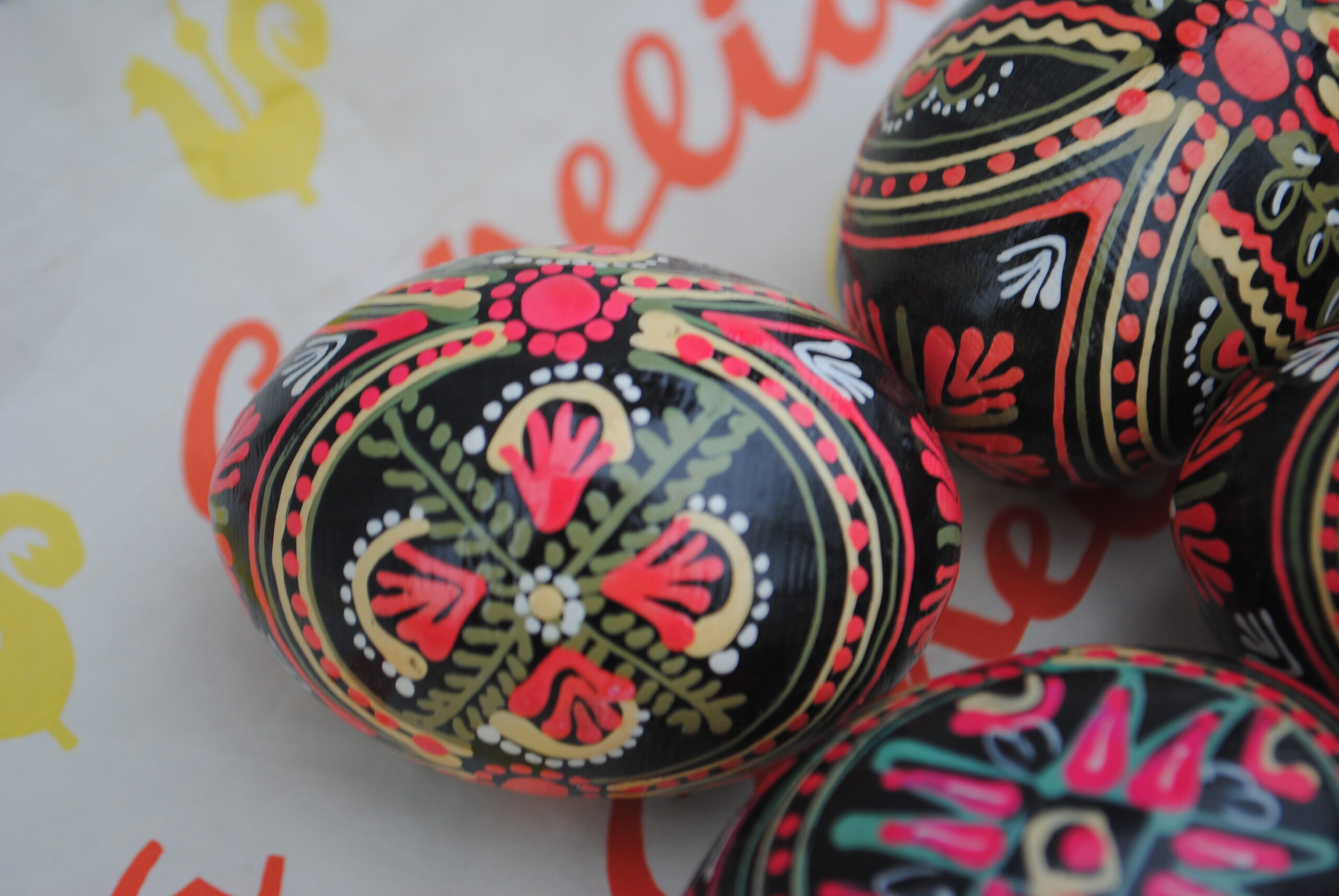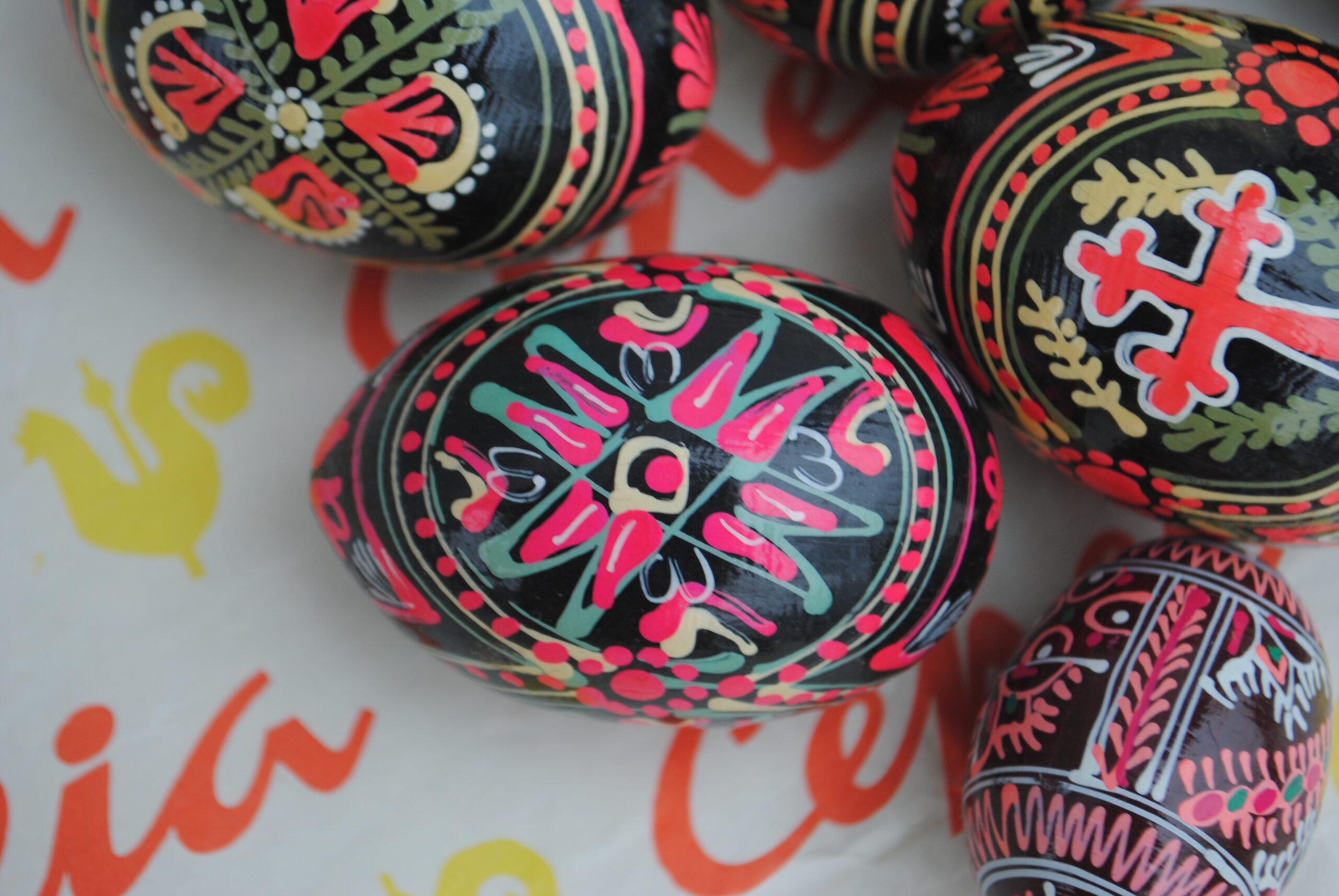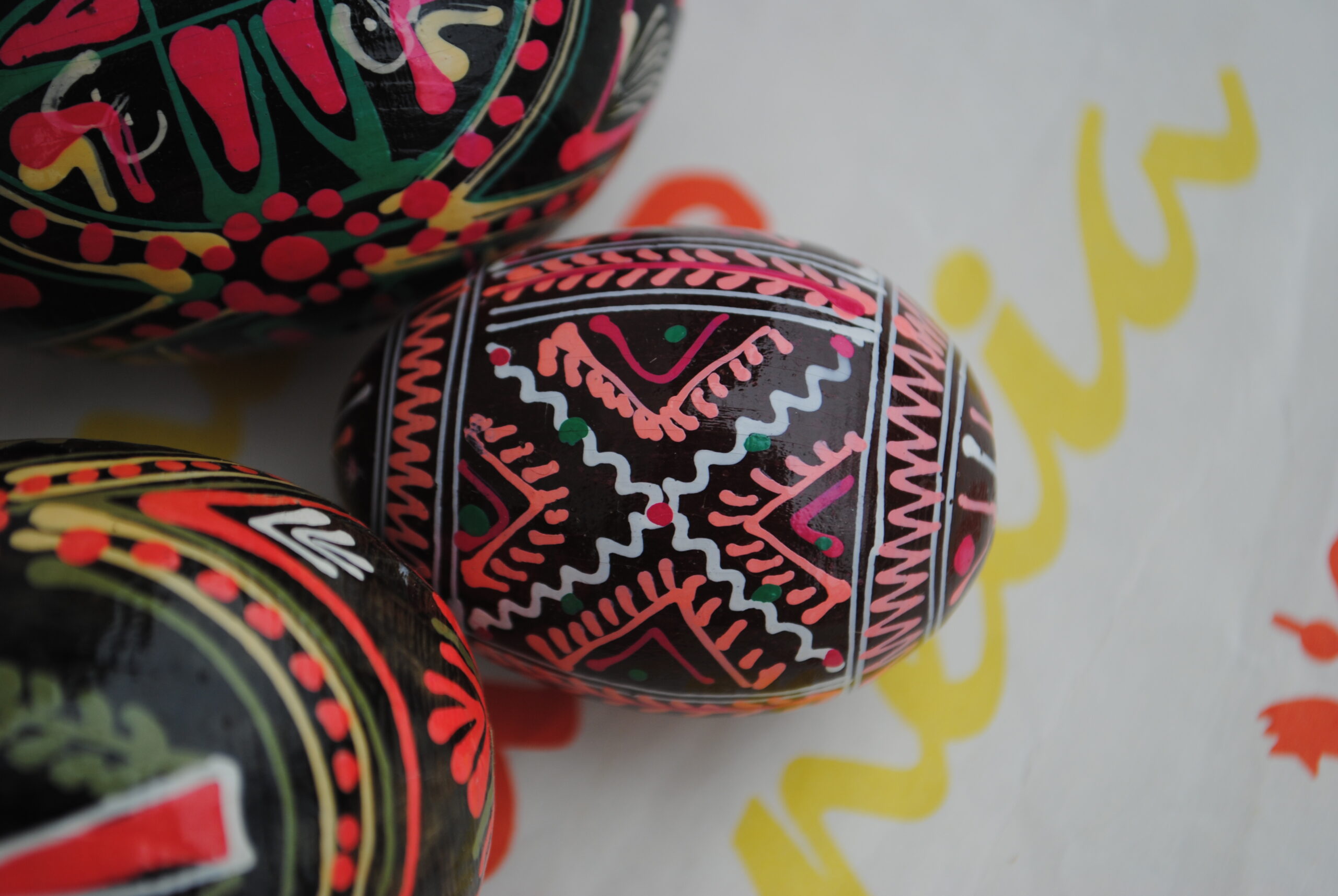 Drewniane jajka PRL. 7 sztuk. Ręcznie malowane.