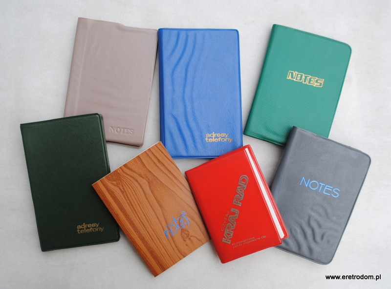 Zestaw 7 notesów pochodzących z lat PRL. Mamy tu zarówno standardowe notesy do notatek jak i na adresy czy telefony.