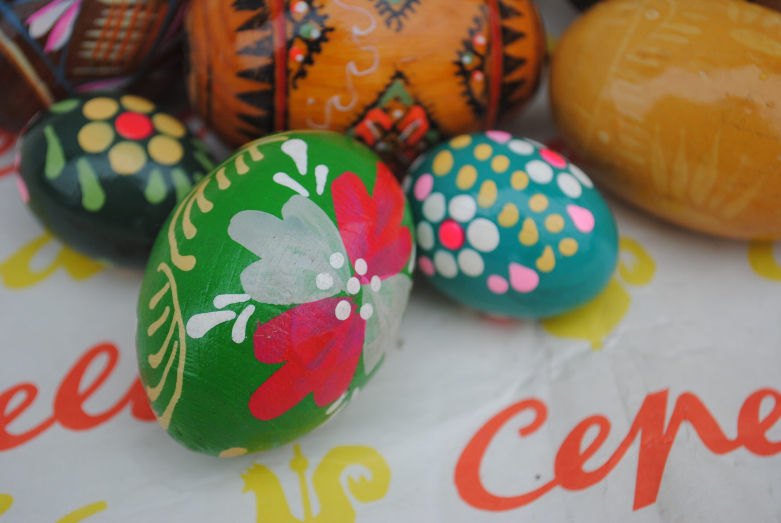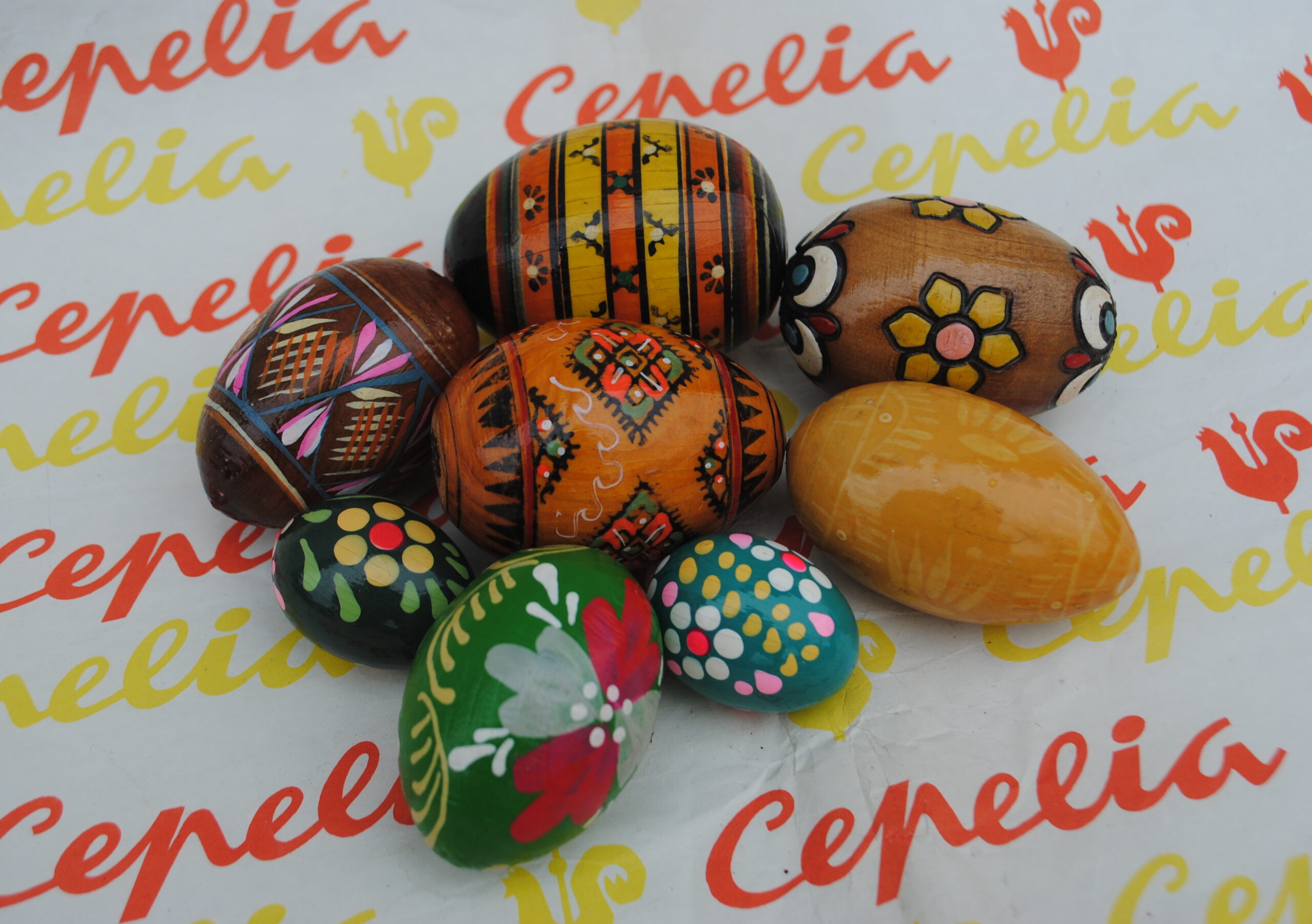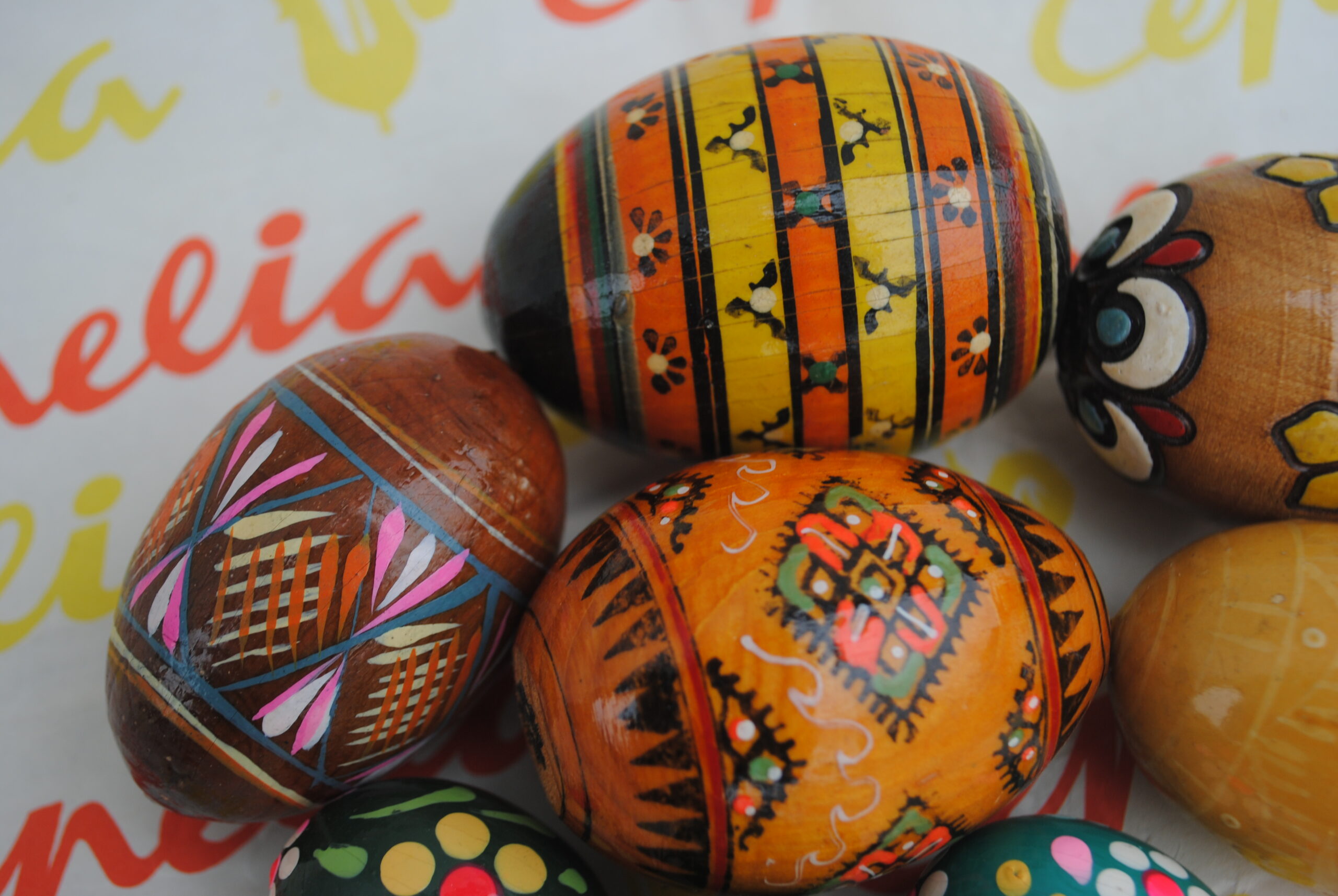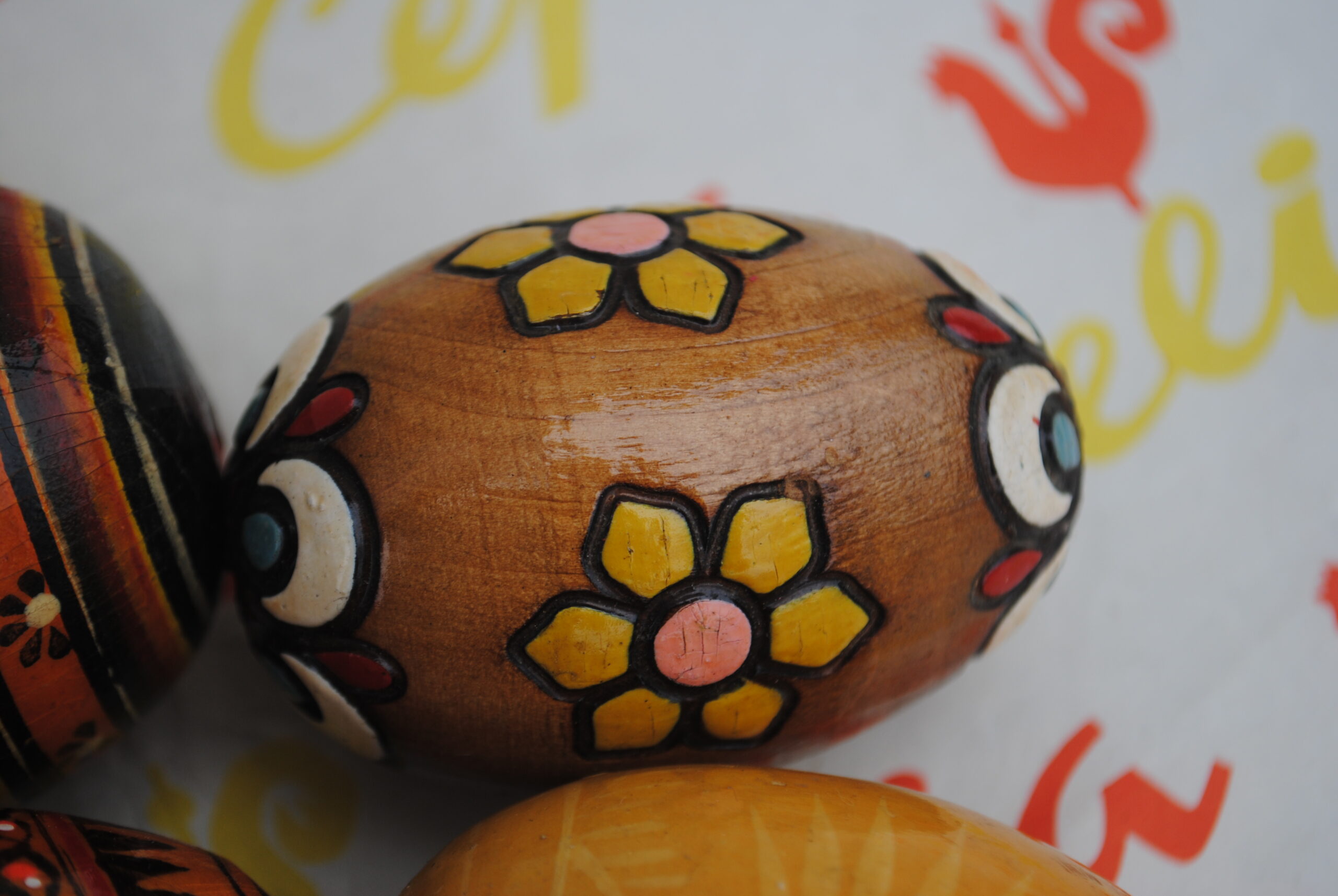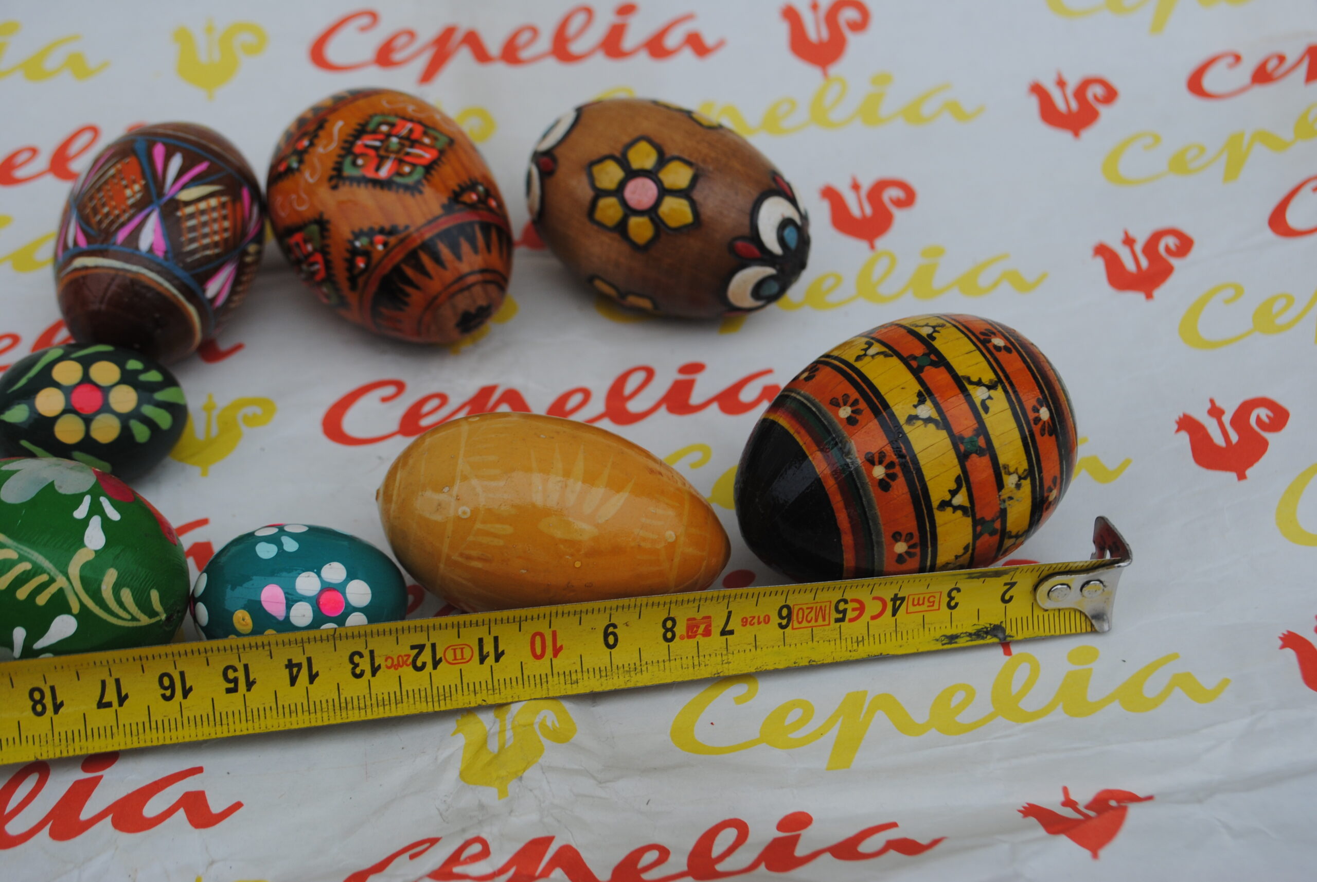 Drewniane jajka PRL. 8 sztuk. Ręcznie malowane.