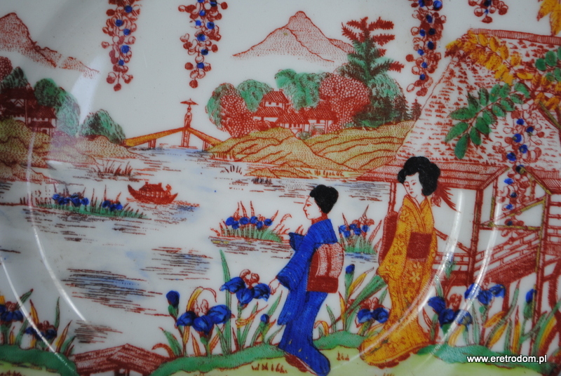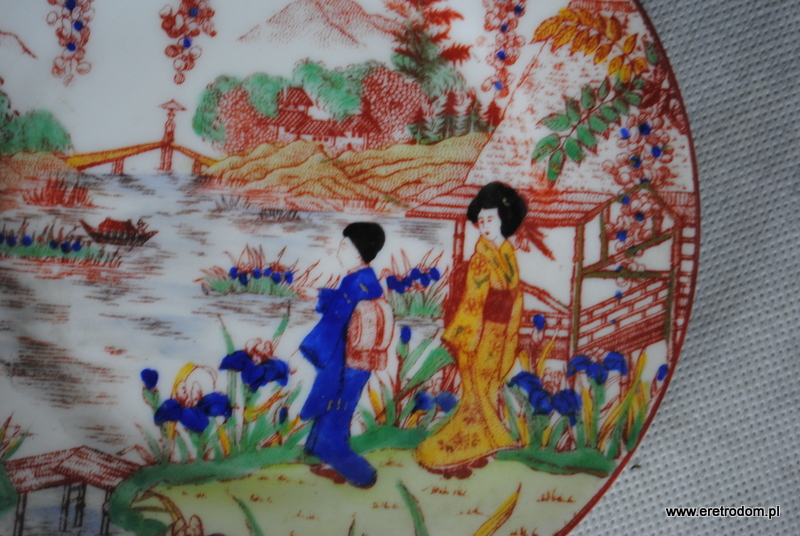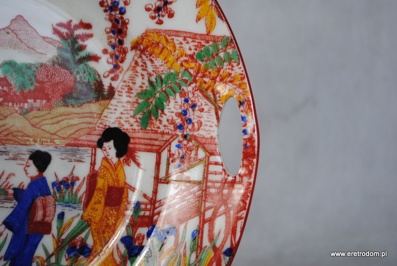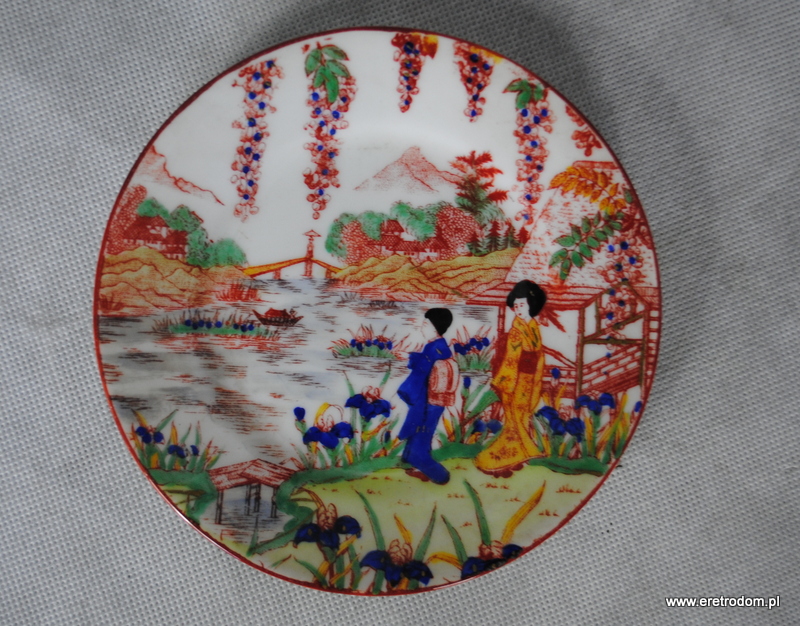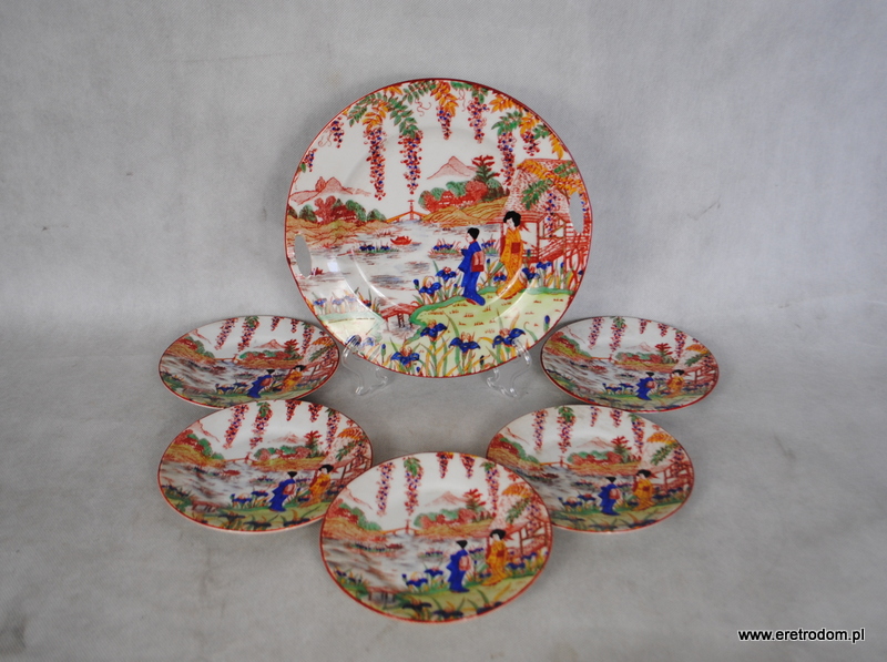 Zestaw do ciasta w Japońskim styku. Biała, dość delikatna porcelana malowana w orientalnym stylu. W skład wchodzi patera oraz 5 talerzyków deserowych.