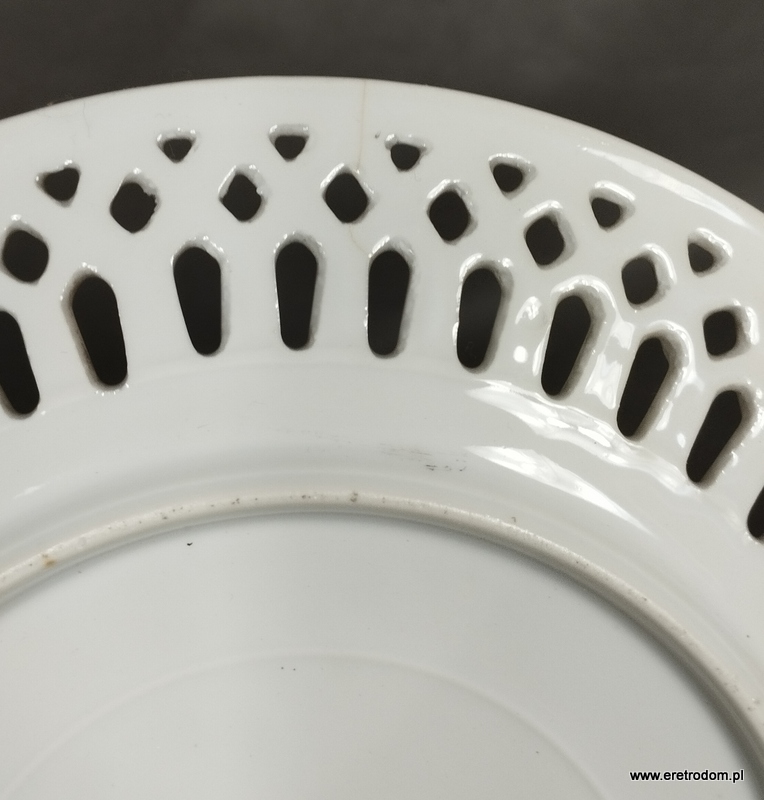 Stan bardzo dobry, przetarcia złocenia, niewielkie spękanie na jednym ażurze.